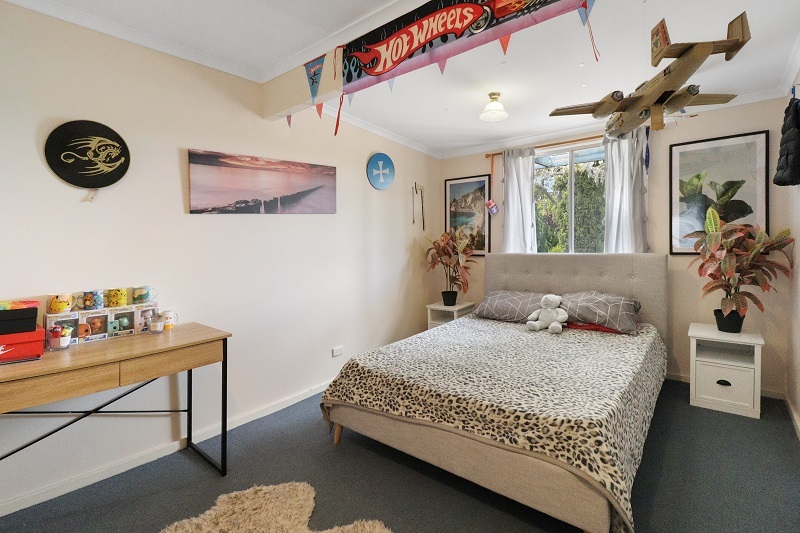 flooring, power & lights, work bench, shelving • Private undercover paved entertaining area with ceiling fan • Tranquil shady areas to enjoy outside and ample room for play equipment • Rear yard is fully fenced and plenty of room the pets, chooks, more fruit