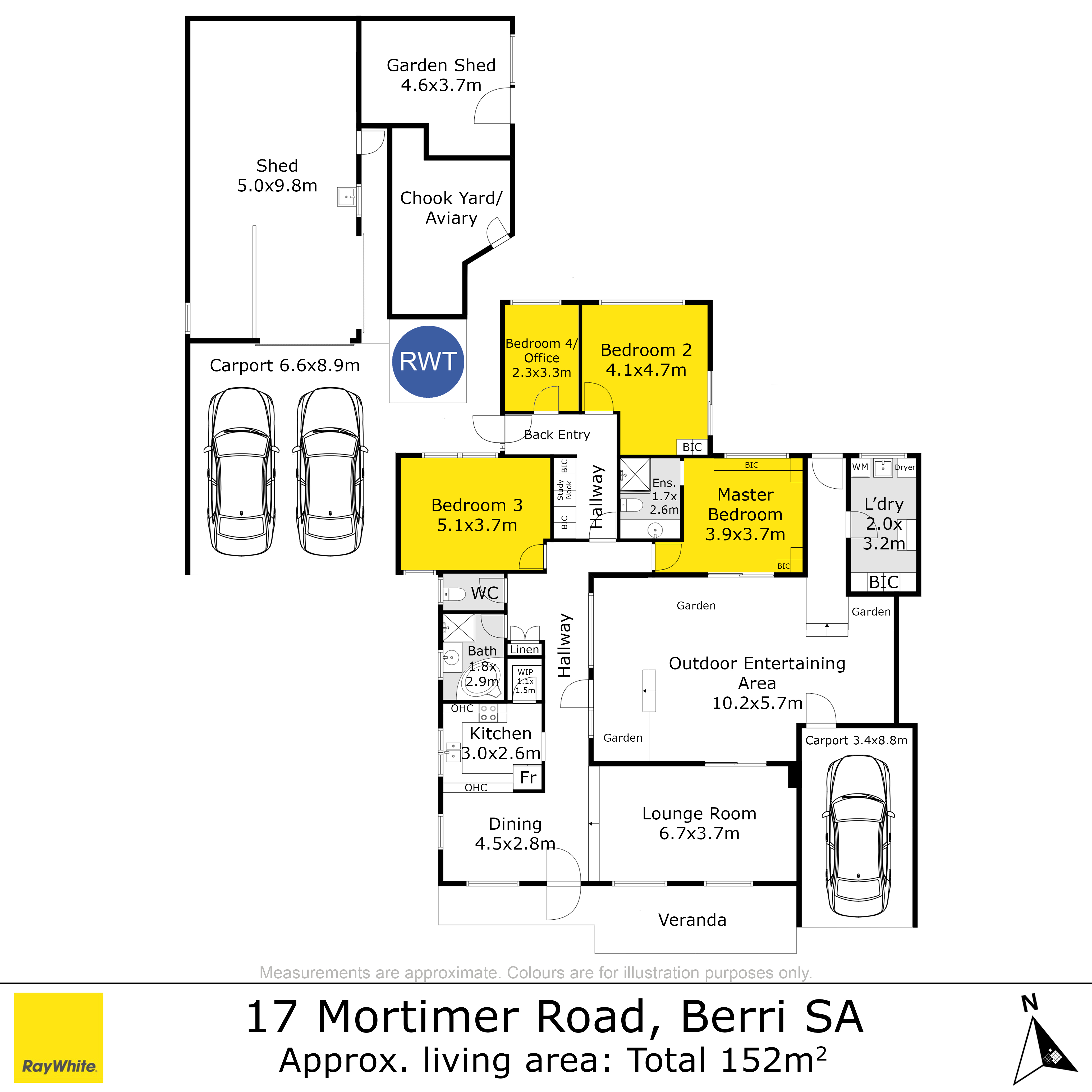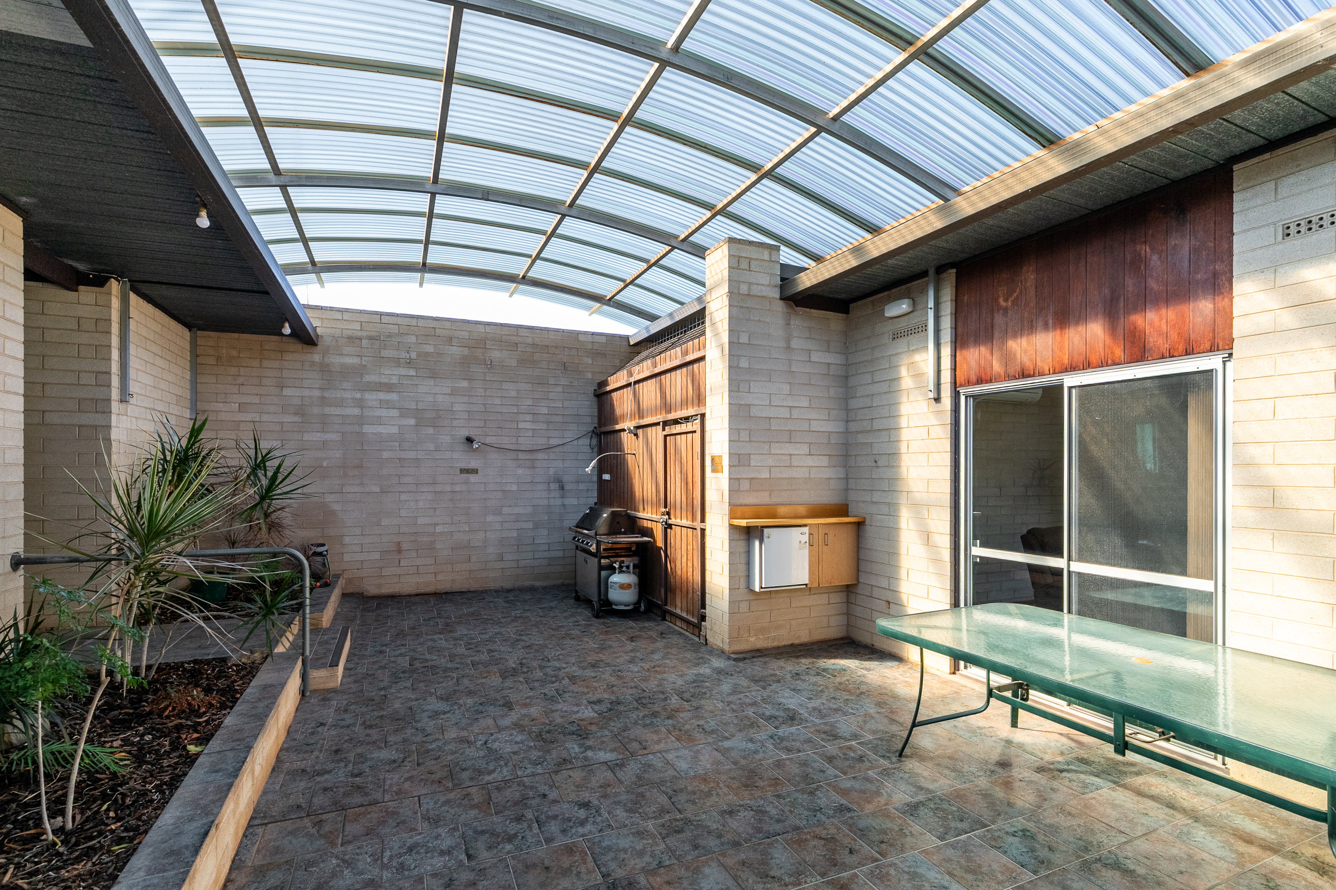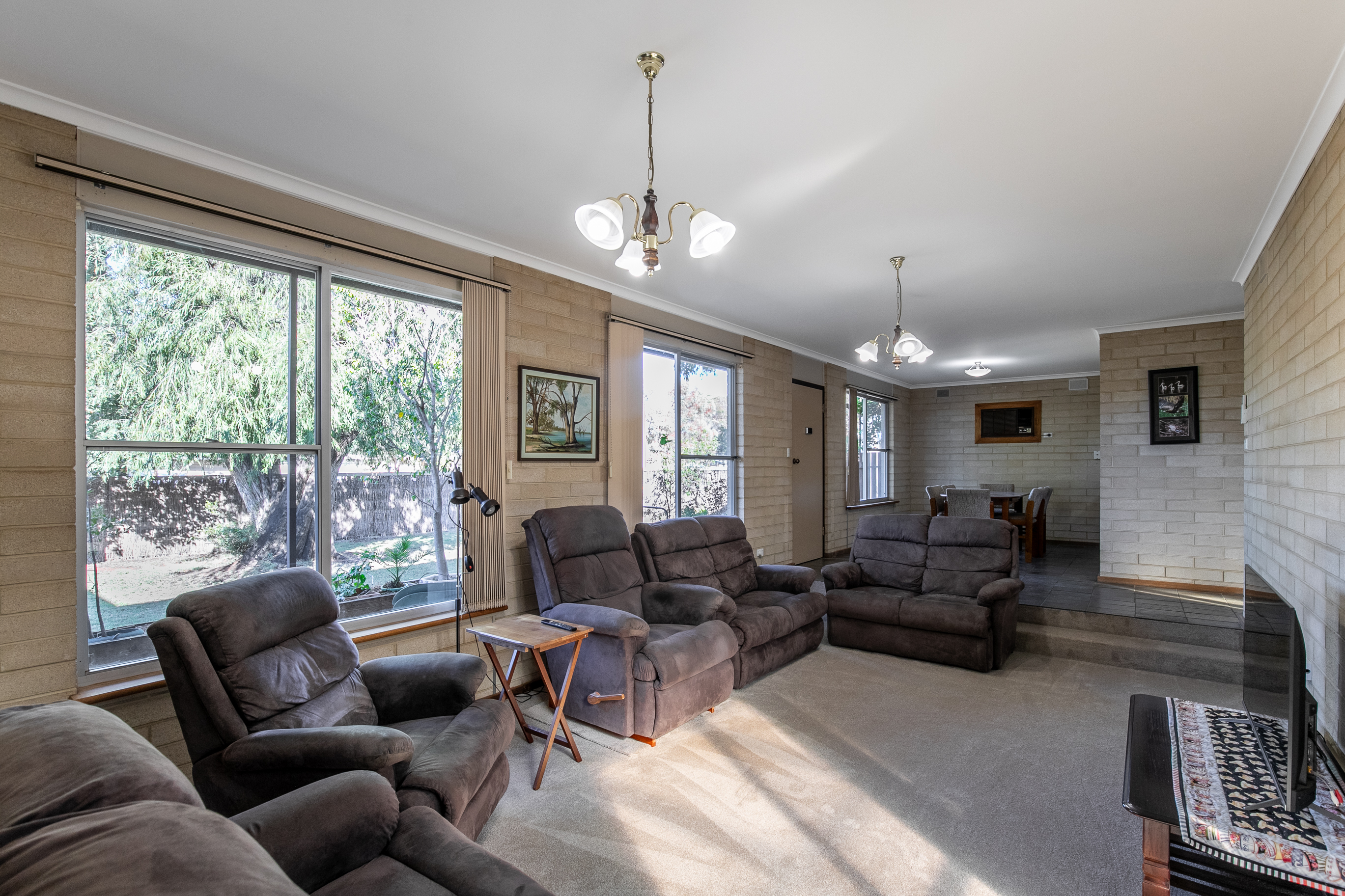 Family Oasis with Classic Appeal and Modern Comforts! • Charming double brick family home set on a generous 942m² allotment • Perfect for families seeking space, comfort and privacy • Welcoming entrance with slate floor leads to a spacious dining area • Carpeted sunken lounge with access to internal courtyard for relaxed living • Timber kitchen boasts electric cooking, WIP, refrigerator and servery to dining • Generous carpeted main bedroom with BIR, and courtyard access • Ensuite with large vanity, shower and the skylight services the primary suite • Three additional carpeted bedrooms, one with BIRs, another with desk and storage • Luxurious primary bathroom features a corner spa, shower and vanity • Ducted evaporative cooling and split-system air-conditioning in lounge • Ample storage solutions throughout the home • Undercover internal courtyard features tiled floor, curved roof and garden beds • Low maintenance grounds with automatic irrigation system in the front • North facing rear yard showcases red flowering gum, bird aviary and additional workshop • Dual driveways access high-clearance carport and large garage with workshop